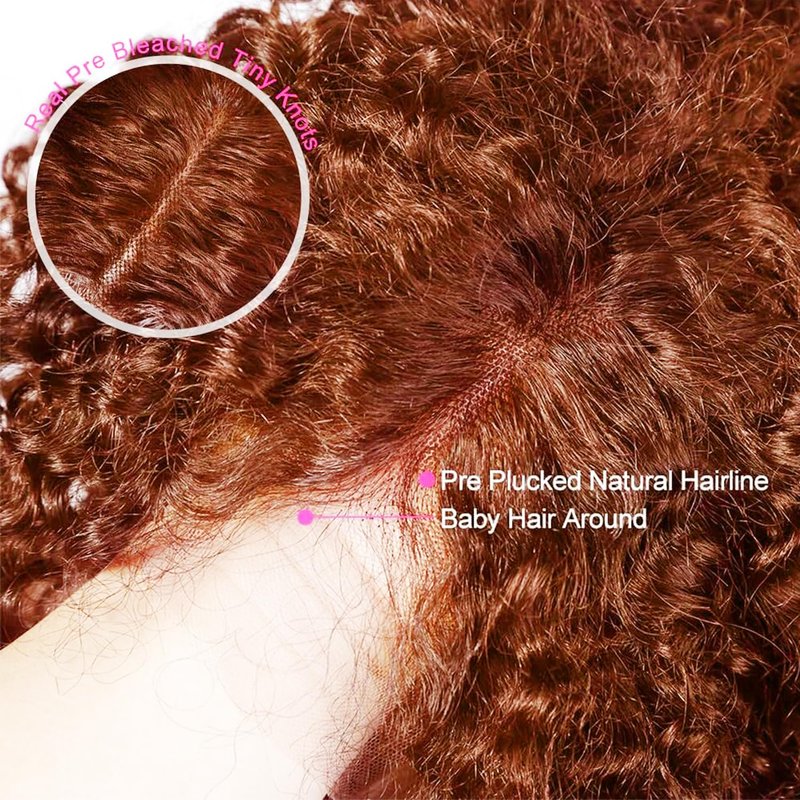 - Reddish Brown Lace Front Wigs Human Hair Details and Cap Process:13x6 Kinky Curly Lace Front Wigs Human Hair ,Auburn Brown Lace Front Wigs Human Hair for Woman.Pre Plucked with Baby Hair and Natural Hairline, Hair Knots are Very Small,Match all Skin Color Perfectly.HD Lace Front Wigs Cap(21.5-22.5 Inch)with 4 Combs and 2 Adjustable Straps Make It Fit Most People,Firm and Snug.Wig Elastic Bands Allows to Change The Tightness to Fit Your Head Circumference.Easy to Wear and Remove.