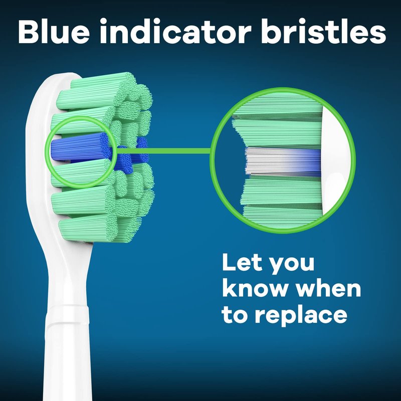 - 【Warm Indicator Bristles and Easy to Install】Just pull out your old brush heads and snap the new one on, easily and smoothly. When the blue indicator bristles fades then you can tell right away it is time to change your toothbrush head to always get an effective clean.