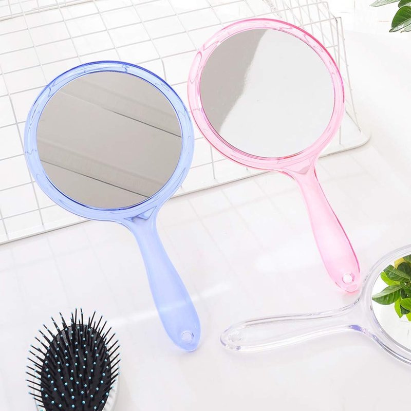 TOPYHL Makeup Hand Mirror, Double-Sided 3X 1x Magnifying Large Travel Handheld Mirror Cosmetic Mirror Acrylic Clear Finish Round Mirror (Blue)