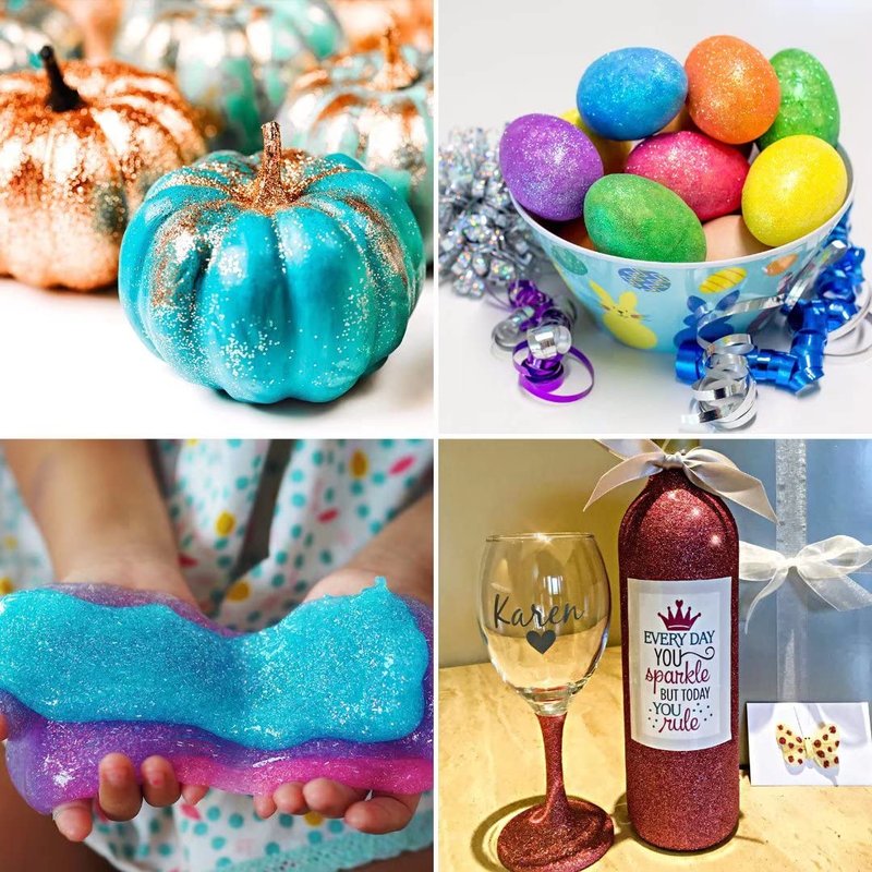 - Multi-Purpose Fine Glitter : Glitter dust can be used on different arts crafts, slime, tumblers, makeup, DIY projects, wine bottles, led candles, party decorations, glittered pens, cards, holiday ornaments etc.