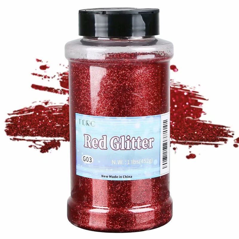 TORC Red Fine Glitter 1 Pound 16 OZ Glitter Powder for Tumblers Resin Crafts Slime Cosmetic Nail Painting Festival Decoration