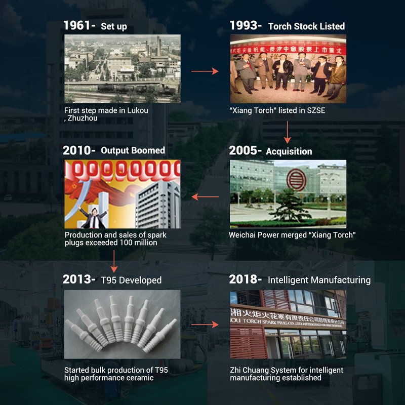 - 馃煝LONG HISTORY - In 1961, Zhuzhou torch spark plug. Co.,ltd. was established at Lukou, Zhuzhou, CHINA. In 1993锛孴ORCH was listed as Shenzhen stock exchange. In 2003锛孴ORCH has become china鈥檚 largest spark plug production and R&D base. Subsequently, TORCH bought the full set of equipment and technical patent from DELPHI U.S.A. Spark plug factory, ride into the forefront of the world!