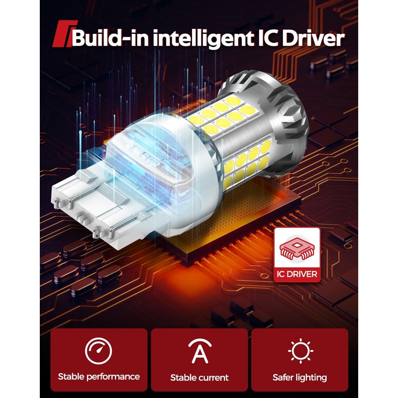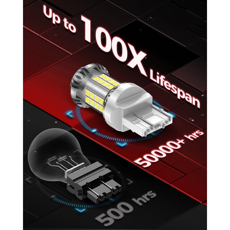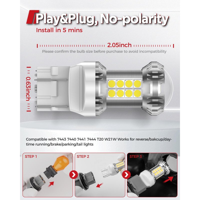 - 【CANBUS Ready & Stable Performance】7443 7440 led backup light bulb built-in CANBUS system prevents error code and odd flickering on the 95% of vehicles. the intelligent IC driver builted make the bulb better performance,such as low consumption, low temprature, long lifespan.