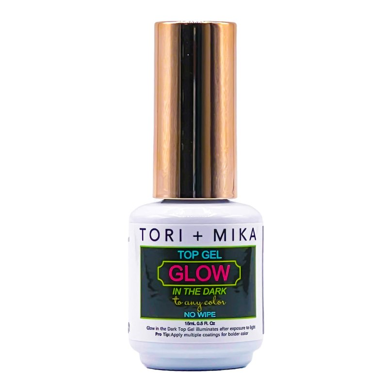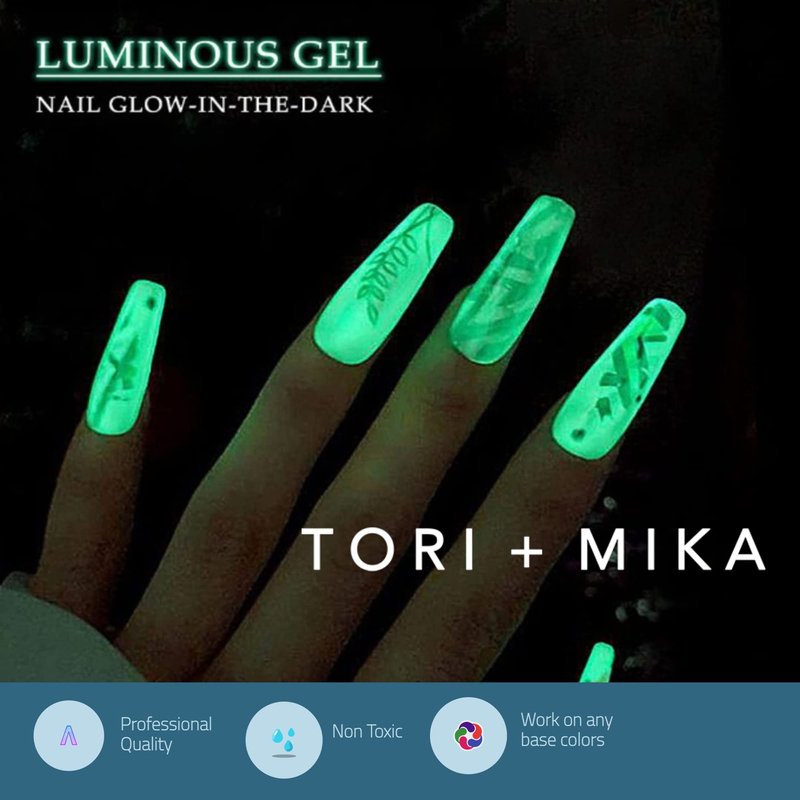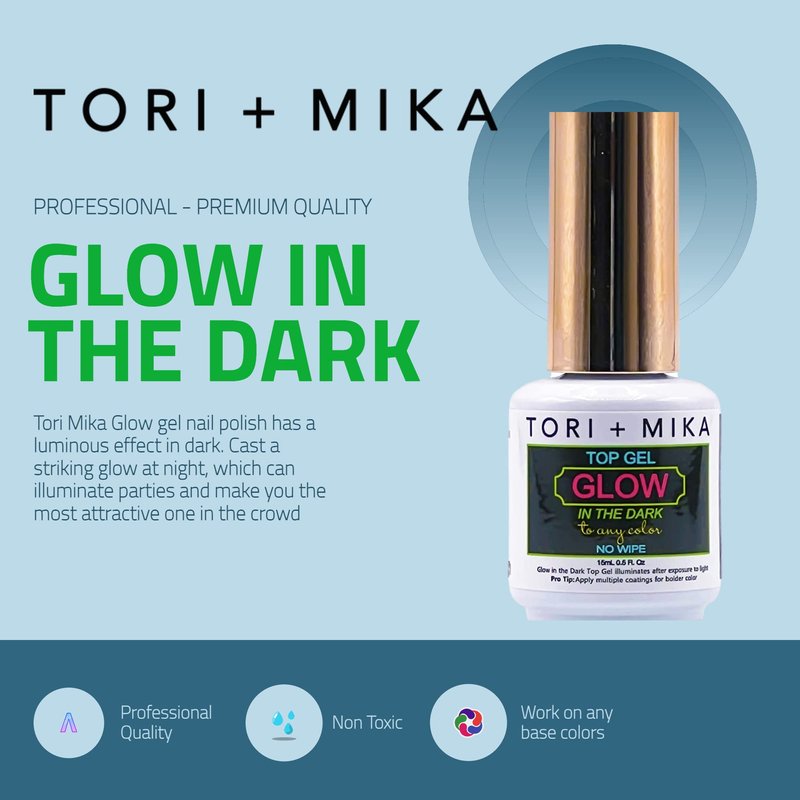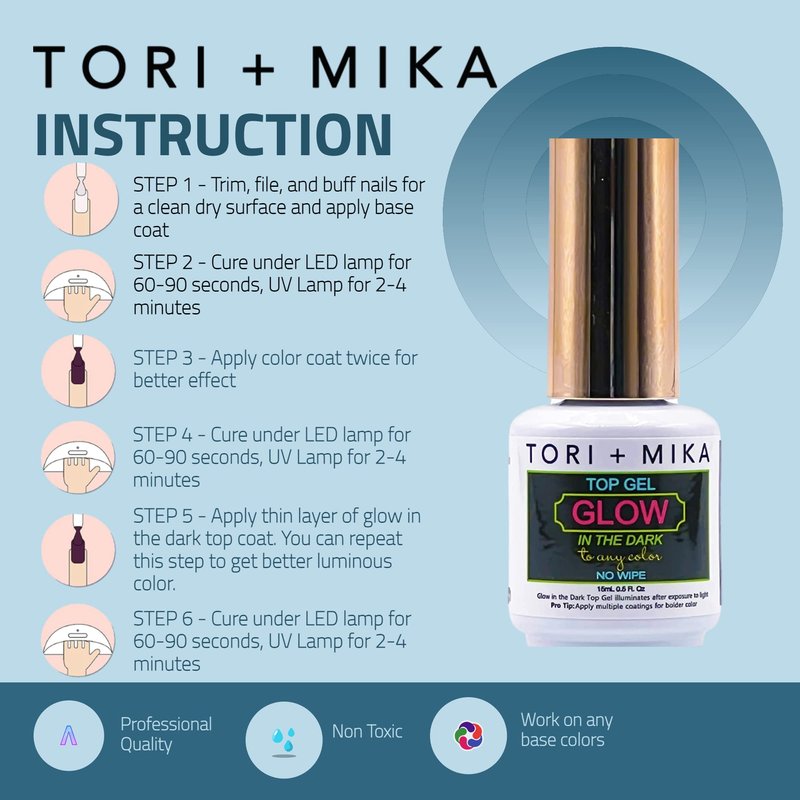 Tori + Mika Glow In The Dark Top Coat Gel Polish Soak Off No Wipe 0.5oz Nail Polish LED/UV Lamp Cure Work on Natural and Fake Acrylic Nails Fun Home Salon Professional Nail Art DIY Haloween