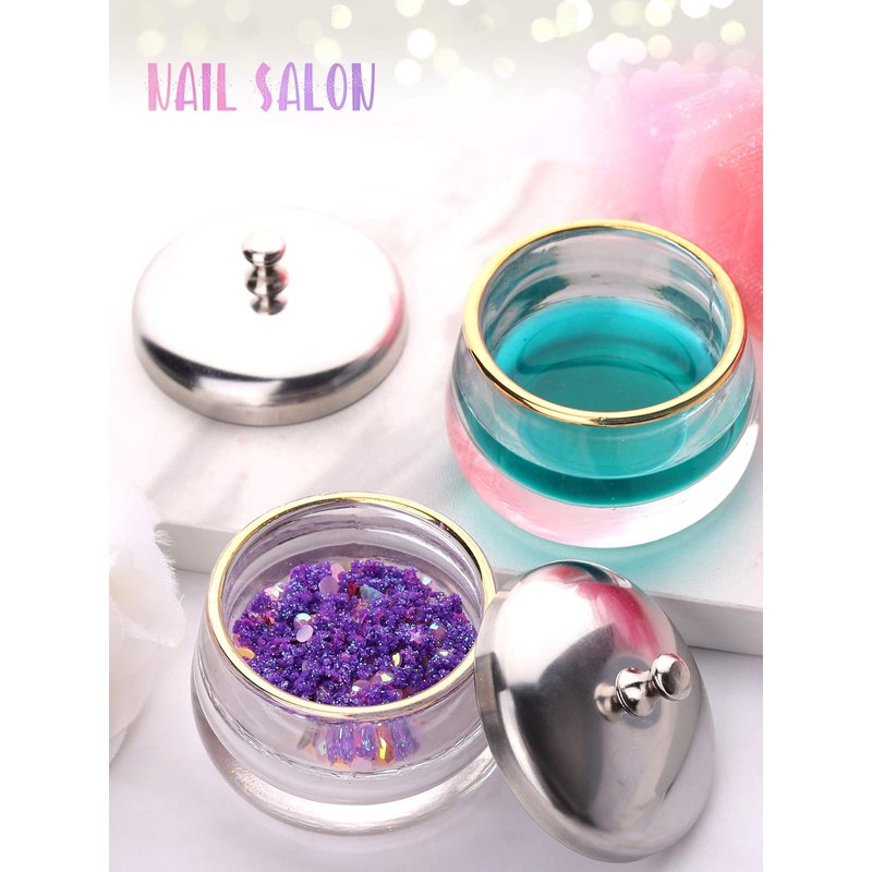 - 💖【 Premium Materials】Dappen dish for acrylic nails featurs with clear glass surface and good matte texture,very comfortable to touch, non-slip and not easy to turn over;the stainless steel cover adopts a mirror design, smooth and without scratches, looking delicate and is a necessary tool for every nail enthusiast