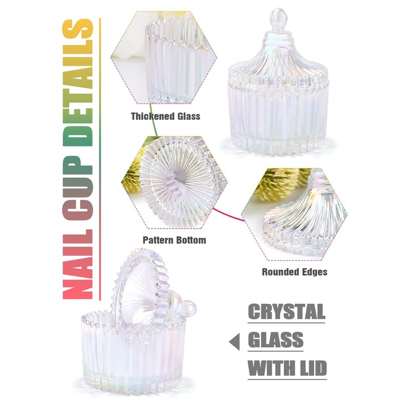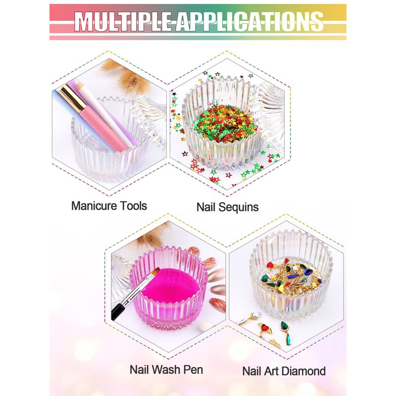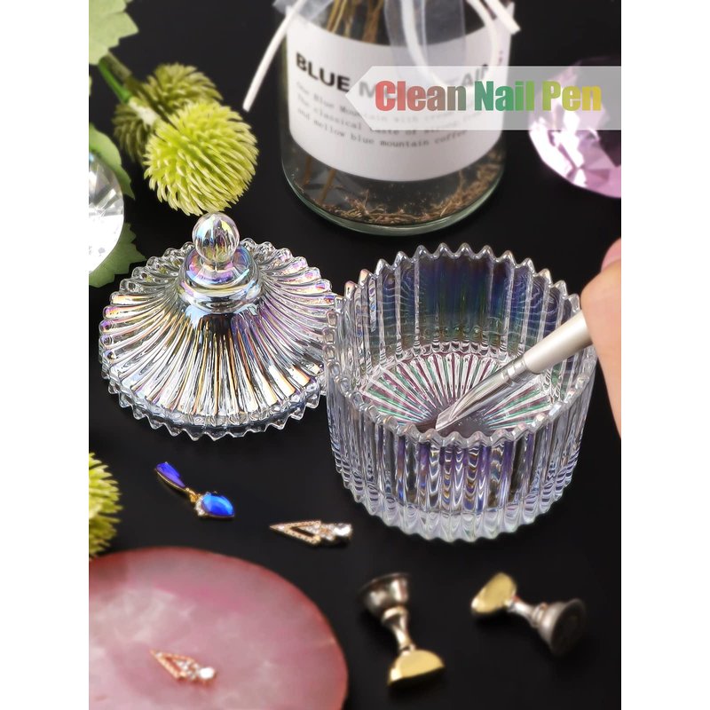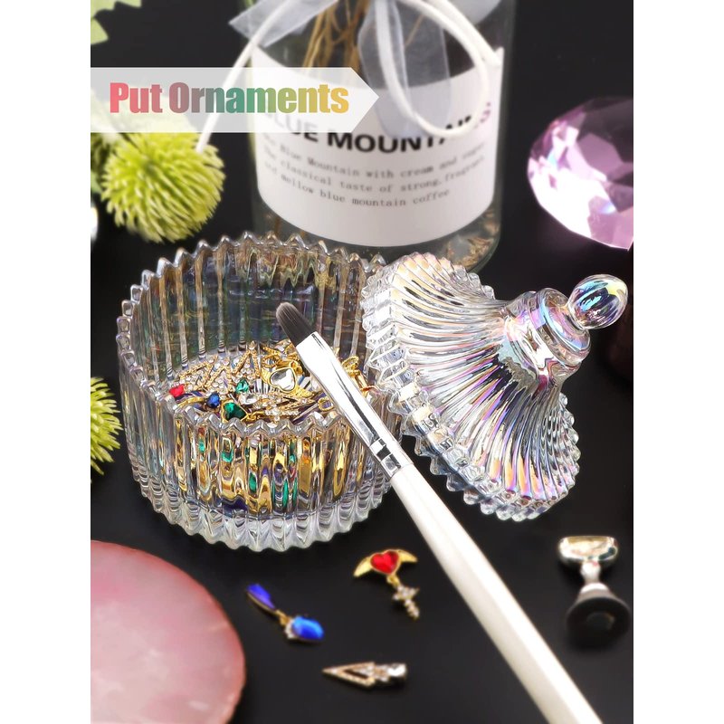 - 【Multi-Function】- Glass dappen dish with lid can be used for mixing acrylic nail liquid, cleaning nail art pens, stored nail polish remover, powder and other liquids, which are also nice for holding nail decoration, bead, sequins, rhinestones, charms. Furthermore, a perfect container to keep your earrings, rings, necklaces and candles, small votive,tea light etc.