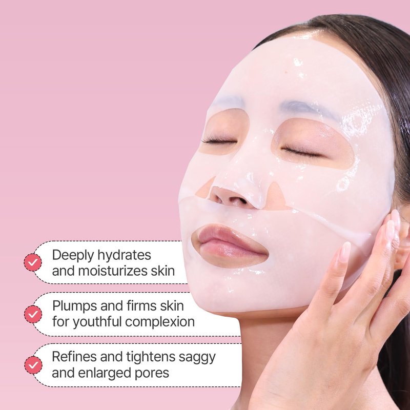 Elevate your skincare experience with our scientifically-formulated moisturizer, enhanced with a potent 5D Complex of Collagen and Peptides, designed to dramatically improve skin elasticity and reduce the appearance of wrinkles. Our innovative 10D Hyaluronic Acid ensures a deep, multi-layered hydration, saturating your skin with the moisture it craves. A comprehensive Amino Acid Complex offers additional moisture care, bolstering skin resilience for a supple feel. Dual-Action Formula: Significantly enhances skin's firmness and smooths out fine lines for a rejuvenated appearance. Embossed Gel Mask Sheet: Crafted for maximum conformity to facial contours, allowing for impeccable coverage and absorption. NMF-Infused Texture: Maintains a resilient, moisturized complexion thanks to Natural Moisturizing Factors. Ideal for Sensitive Skin: A gentle, irritation-free formula suitable for the most delicate skin types. Key Advantages: 5D Complex Collagen and Peptides: Strengthen the skin's structure for a visibly smoother, firmer texture. 10D Hyaluronic Acid: Provides profound and sustained hydration, plumping the skin from within. Amino Acid Complex: Protects and nourishes, enhancing the skin's natural barrier against environmental stressors.