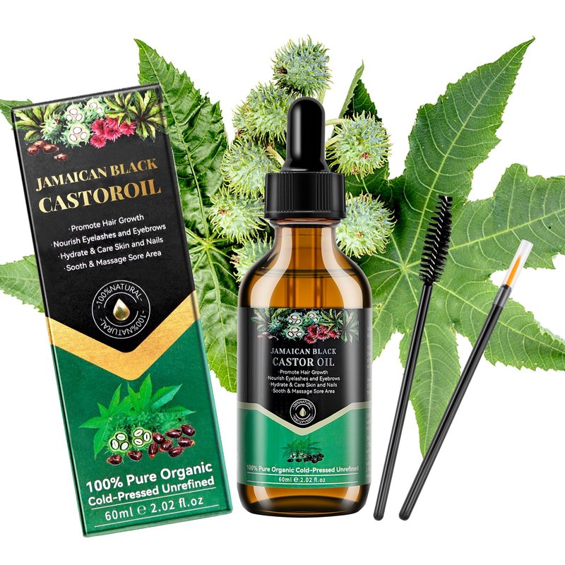 - 【100% Pure Natural 】Our organic castor oil is 100% composed of natural Jamaican black castor, cold pressed and unrefined. The Healing Power From Nature! The product set includes a bottle of 60ml black castor oil, an eyebrow brush and an eyelash brush.