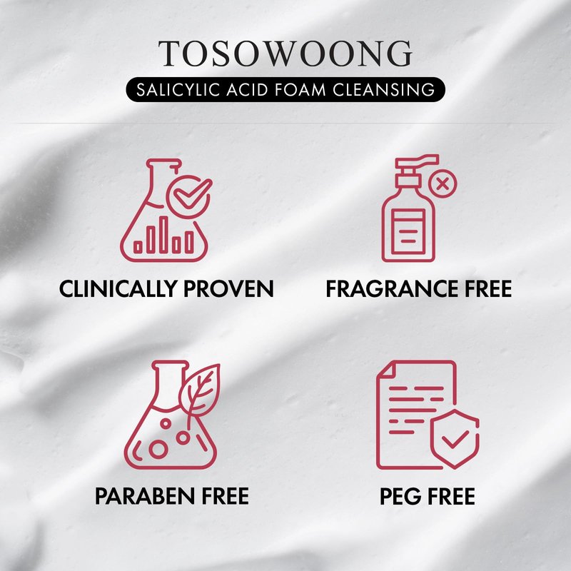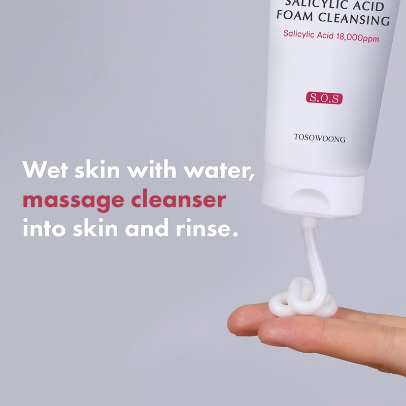 TOSOWOONG Salicylic Acid Foam Cleanser for Oily Skin, 18,000ppm Salicylic Acid, Deep Pore Cleansing, Face Wash For Breakouts, Exfoliating Cleanser, Korean Skin Care, 100ml, 3.38 fl. oz.