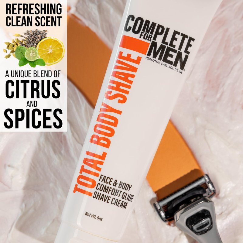 - Fresh, Masculine Scent - Complete For Men Total Body Shave Cream provides a refreshing manly scent of citrus and spices that leaves you with a hint of sophistication. It's the perfect touch to your grooming routine that not only protects and soothes skin, but also indulges your senses with a refreshing and masculine aroma, making your shaving routine a sensory delight.