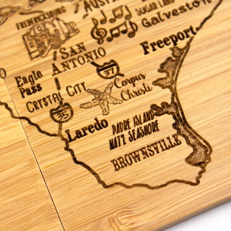 - TERRIFIC FOR ANYONE WHO LOVES TEXAS: the state is split in quarters across all four coasters with laser-engraved artwork calling out the sights and places that make it great; put the coasters together to complete the picture