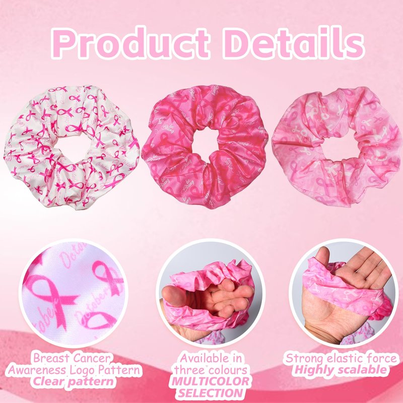 - 【Package】3pieces of breast cancer hair scrunchies with a diameter size in 4.8 inch, available in mixed three color of dark pink, light pink and white which will make you more attractive on breast cancer themed activities