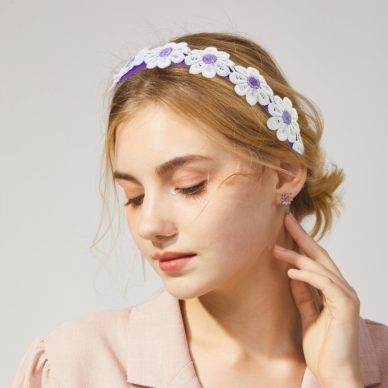 Totelux Flower Headband Purple Daisy Hair Bands Cute Embroidery Flowers Hair Accessories for Women Girls Birthday Wedding Party Supplies