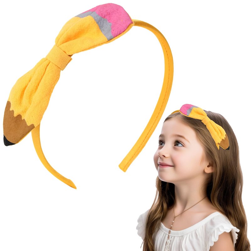 Totelux Pencil Headband Yellow Pen Hair Band Cute Bow Hair Accessories for Girls Women Toddler Teachers Student Back to School Season Party Supplies