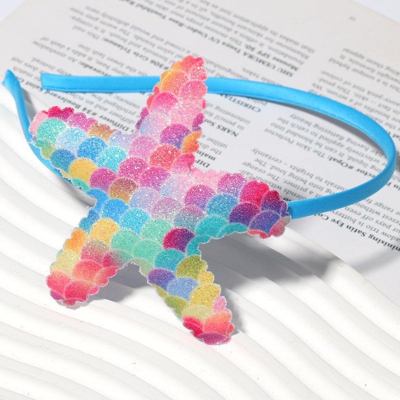 Girls headwear have decorated starfish with glitter flakes, wearing them make you more sparkly and charming in the crowed.