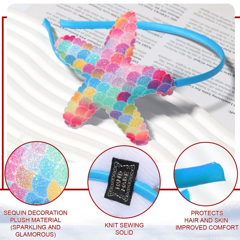 - High Quality: The mermaid hairband is made of soft fabric and reliable material, non-slip and comfortable to wear. It can be stretch, not easily deformed and do not worry starfish fell out.