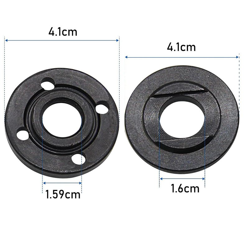 - The grinder angle is approx. 12.6 cm long, and for the flange nut, the outer diameter is 1.61”/4.1cm, the inner diameter is 5/8”/1.6cm(please check the size and comptibility before order) 3.