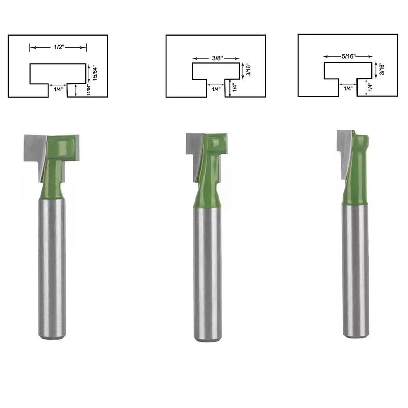 - TOTOWOOD 6pcs 1/4 inch shank keyhole router bit set , 1/4, 5/16 , 3/8, 9/16, 1/2, 5/8 inch in blade diameter.for wood hex bolt T-track slotting milling cutters set