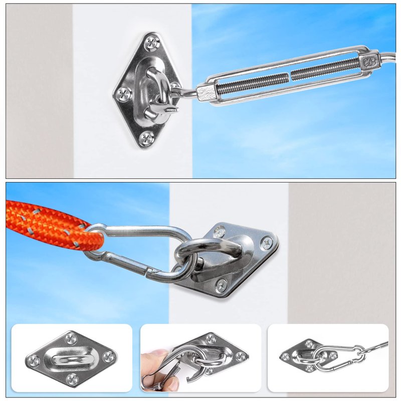 - High-Quality Accessories: Outdoor shade sail installation kit is made of premium 304 grade stainless steel with maximum durability. This set can withstand severe weather such as typhoons and hot sun, it is suitable for garden and yard use.