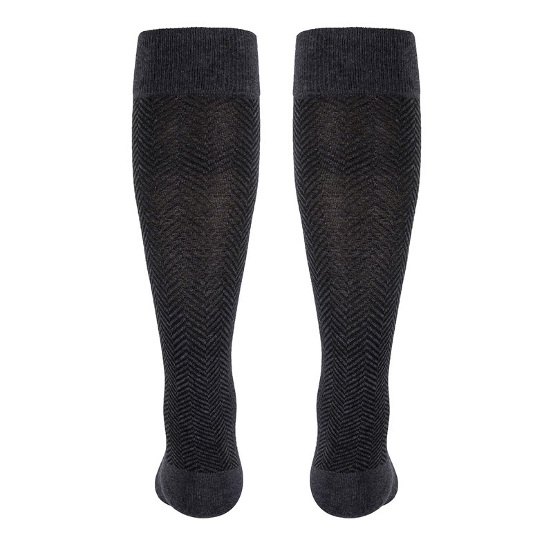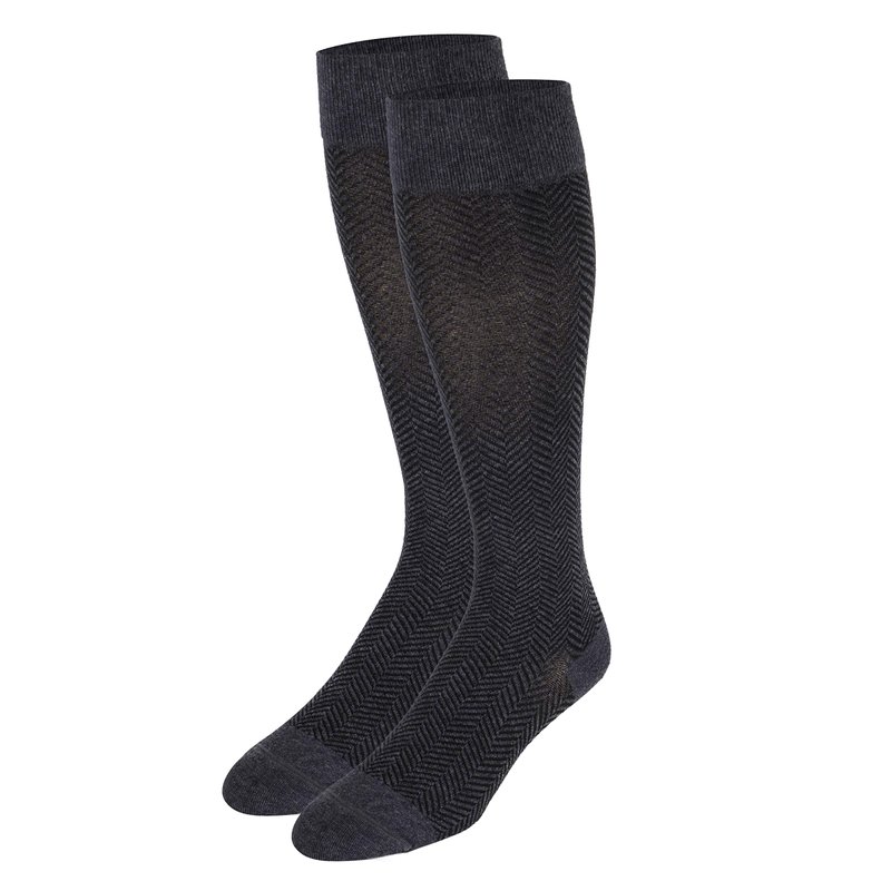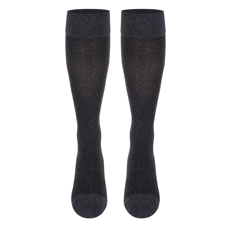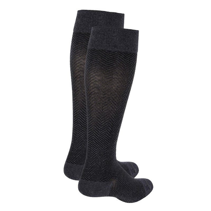 TOUCH Compression Socks for Men, 15-20 mmHg, Herringbone, Cotton, 1 Pair, Charcoal, Medium