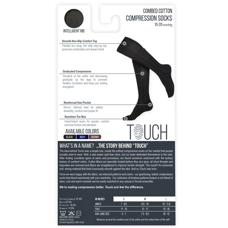 TOUCH Compression Socks for Women, 15-20 mmHg, Ribbed, Cotton, 1 Pair, Brown, Small