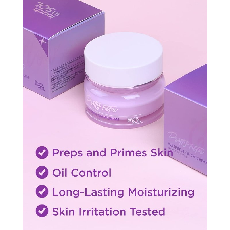 - FACE CREAM WITH REJUVENATING INGREDIENTS: Touch In Sol Pretty Filter Waterful Glow Cream is an ultra-hydrating cream that contains Triple hyaluronic acid, silica, marine collagen extract, and cordyceps militaris extract for intense moisturization of dry skin.