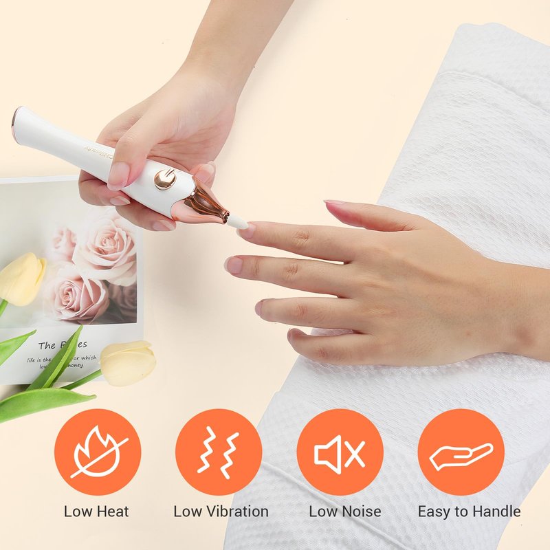 - ERGONOMIC DESIGN: Comfortable handle , Mini Pen-sized Nail Drill can be hold and storage easily, you can take it anywhere on your bag, 2 AAA (not included)/3 LR44 (included) button batteries.