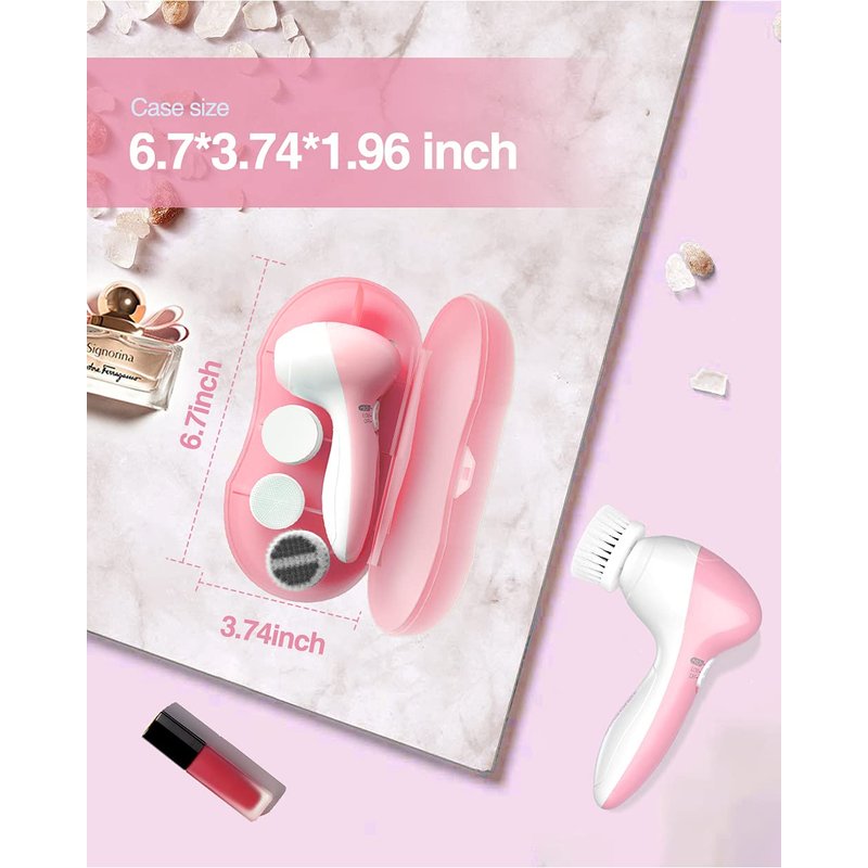 TOUCHBeauty Facial Cleansing Brush Set with Case & 3 Spin Brush Heads for Beginner/Teenagers, Battery Powered, Mini Travel Size Pink