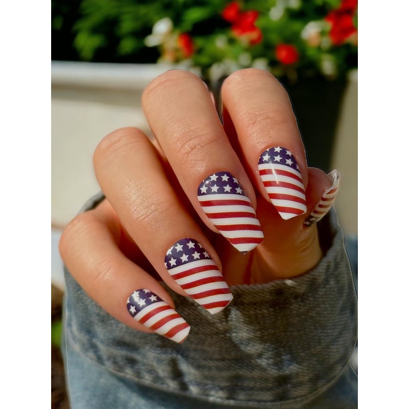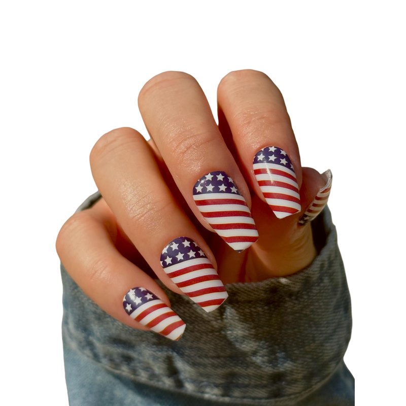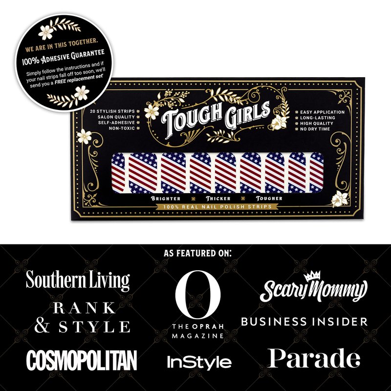 TOUGH GIRLS | Nail Polish Strips | 20 Stylish Strips | Brighter, Thicker, Tougher | Includes Cuticle Stick, Nail File, & Nail Wipes (Stars & Stripes)