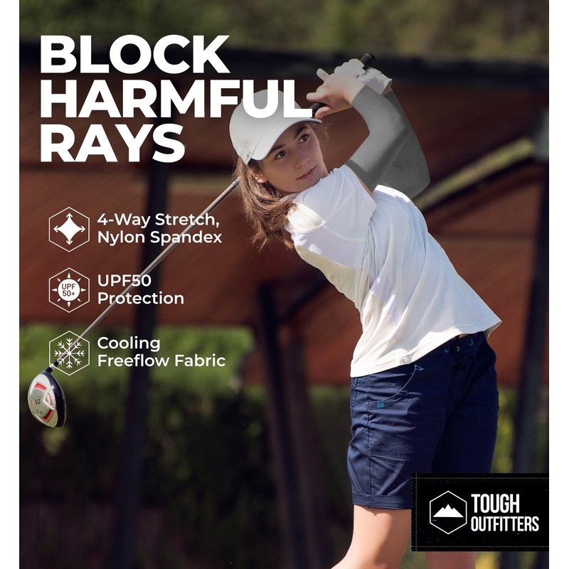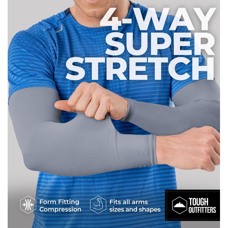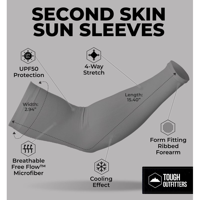 Tough Outdoors Sun Protection Sleeves - UV Arm Sleeves for Men and Women - Golf Cooling Arm Sleeves - Baseball Sun Sleeves