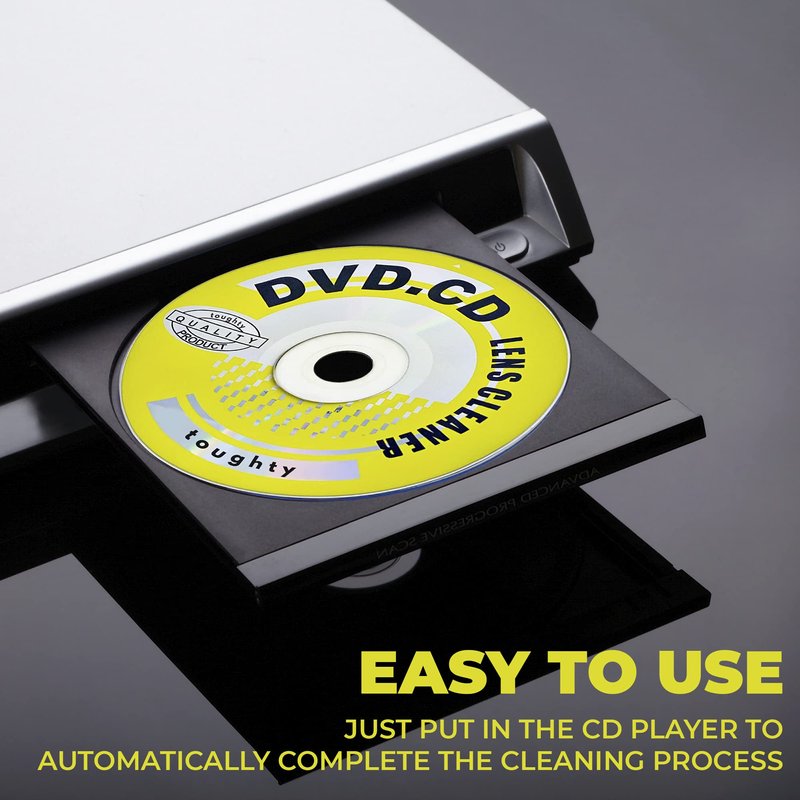 - Laser Lens Cleaner for CD/VCD/DVD players experiencing slow loading, skipping or freezing of discs during playback.The optical lens in a DVD/CD player may accumulate dust, particularly when CDs are shifted between indoor and car stereos. Dust accumulation diminishes the optical signal and often leads to skipping issues, even with clean discs. Toughty Lens Cleaner CD offers a solution to this problem, making it a valuable addition to any physical media setup, especially as your hardware ages.
