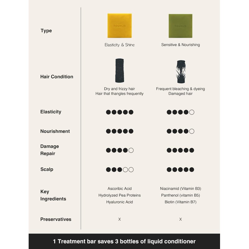 Experience the transformative power of TOUN28's No Wash Volumizing Conditioner Bar, formulated with the nourishing benefits of Brassica Oil Complex and Camellia Seed Oil. This innovative, vegan conditioner bar is designed to volumize and hydrate your hair without the need for rinsing, making it an ideal solution for busy lifestyles. Infused with hyaluronic acid, this conditioner bar provides deep moisture and helps retain hydration, ensuring your hair remains soft, shiny, and full of body. Free from harsh chemicals like parabens, sulfates, and silicones, this conditioner bar offers a gentle yet effective conditioning experience suitable for all hair types. Its solid form not only reduces plastic waste but also makes it a travel-friendly option for those constantly on the move. The Brassica Oil Complex works to strengthen and protect your hair, while the Camellia Seed Oil adds a luxurious shine and smoothness. Unlock your hair's natural elasticity and bounce with the TOUN28 No-Wash Treatment Bar. Designed for all hair types, this vegan and chemical-free treatment enhances your hair's flexibility and movement without the need for harsh chemicals or plastic packaging. Simply massage the bar onto damp hair, focusing on the mid-lengths and ends, and let the powerful ingredients work their magic. With regular use, you'll notice increased manageability, reduced breakage, and hair that effortlessly bounces back into shape. This conditioner bar is particularly beneficial for those looking to add volume and manageability to their hair. The inclusion of hyaluronic acid ensures that your hair retains moisture, combating dryness and frizz. The eco-friendly, solid form of this conditioner bar makes it a sustainable choice for consumers who are conscious of their environmental impact. With TOUN28's No Wash Volumizing Conditioner Bar, you can enjoy the convenience of no-rinse conditioning combined with the benefits of premium, natural ingredients. This conditioner bar is part of TOUN28's renowned Korean haircare line, known for its innovative approach and high-quality formulations. Enhance your hair care routine with this easy-to-use, effective, and environmentally friendly product that leaves your hair looking voluminous, healthy, and radiant. Weighing 2.82 ounces, this compact bar is perfect for travel or everyday use.