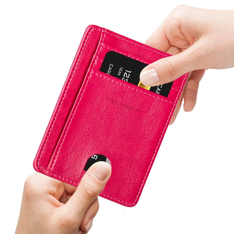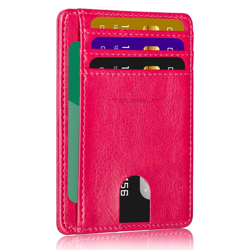 TOURSUIT Travel Minimalist Slim Front Pocket Wallet for Men Women, RFID Blocking Credit Card Holder Case (Rose Red)