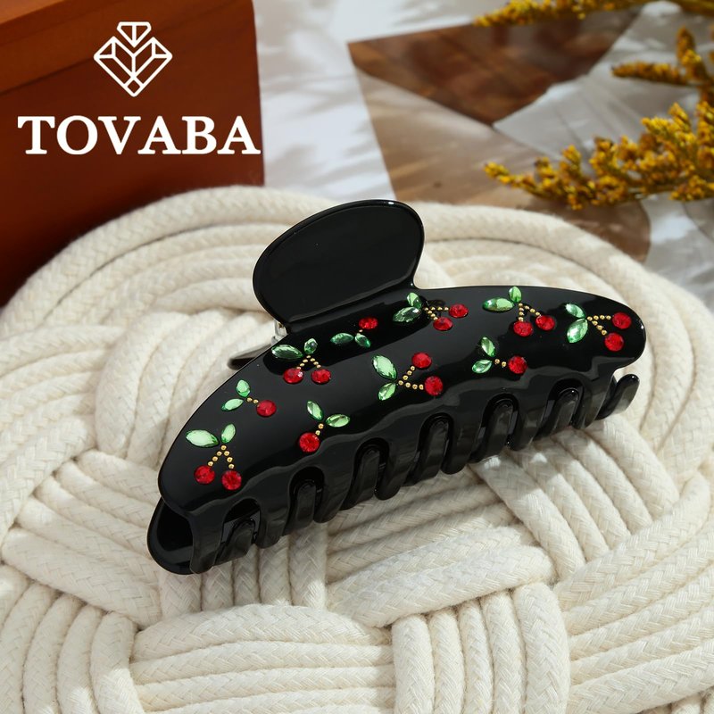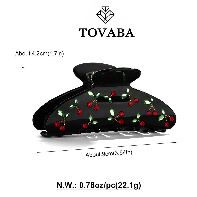TOVABA Black Hair Claw Clips for Women Cherry Black Hair Clips Cute Trendy Medium Hair Claw Clips Acrylic Clips Strong Hold Jaw Hair Clip for Thick Thin Hair