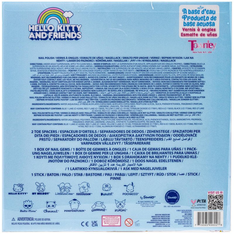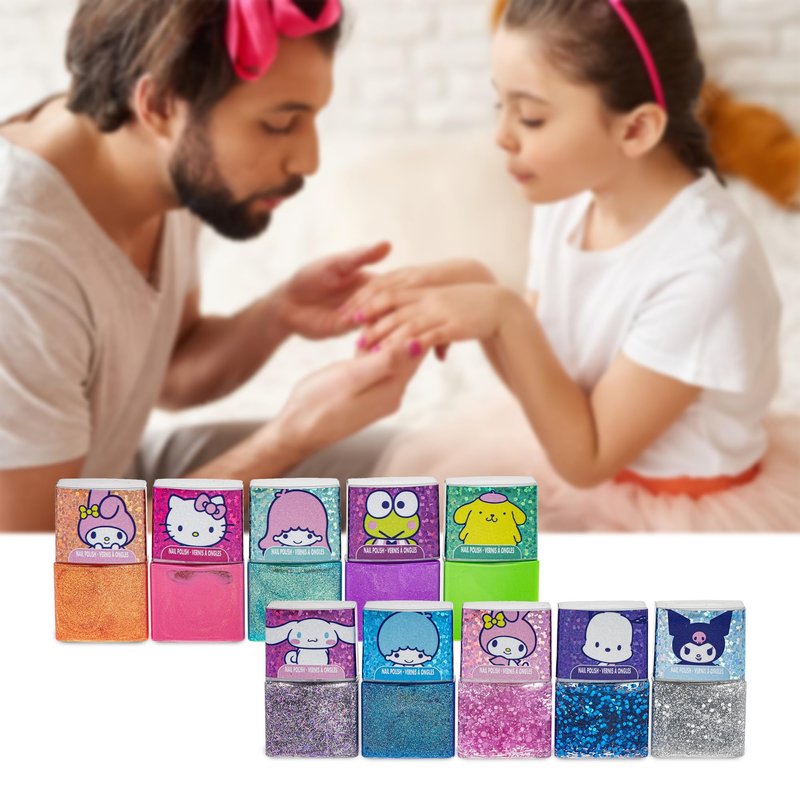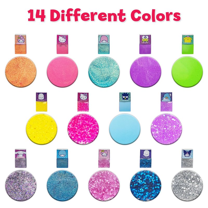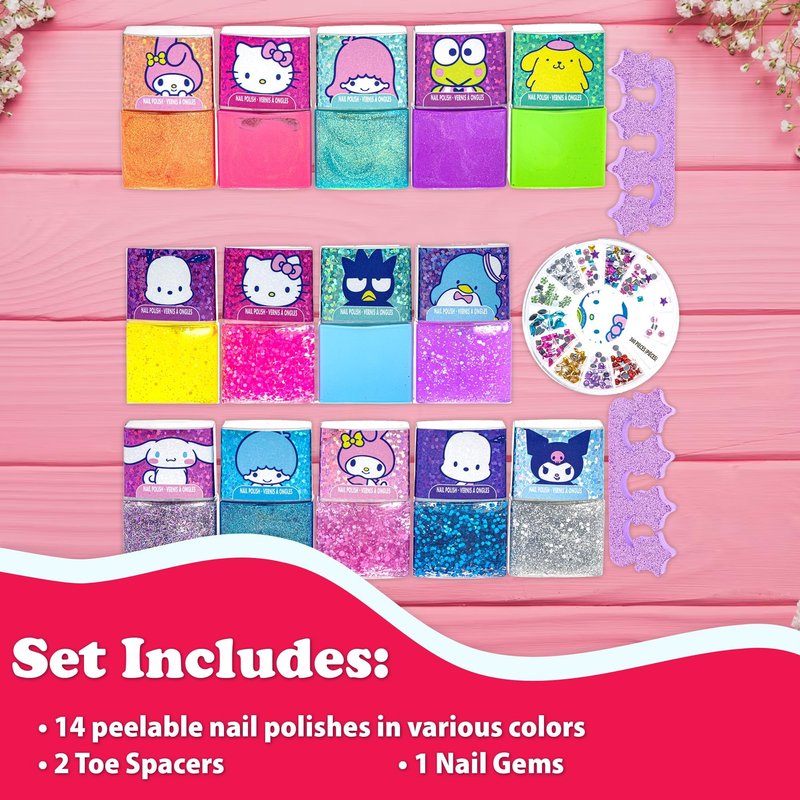 Townley Girl Hello Kitty and Friends Peel-Off Nail Polish Set with Glittery Shimmery & Opaque Colors & Nail Accessories for Girls Ages 3+ For Parties & Makeovers, 18 Pc Set
