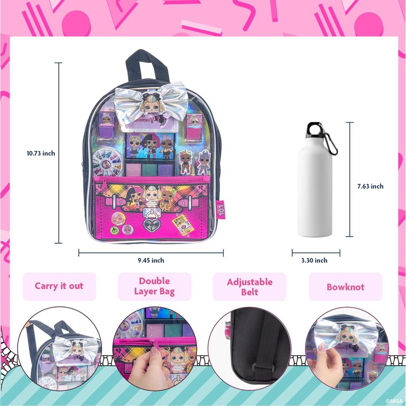 Townley Girl L.O.L. Surprise Backpack Beauty Set for Kids - 11-Piece Makeup Kit Perfect for Parties, Sleepovers, and Makeovers, Ages 3 and Up