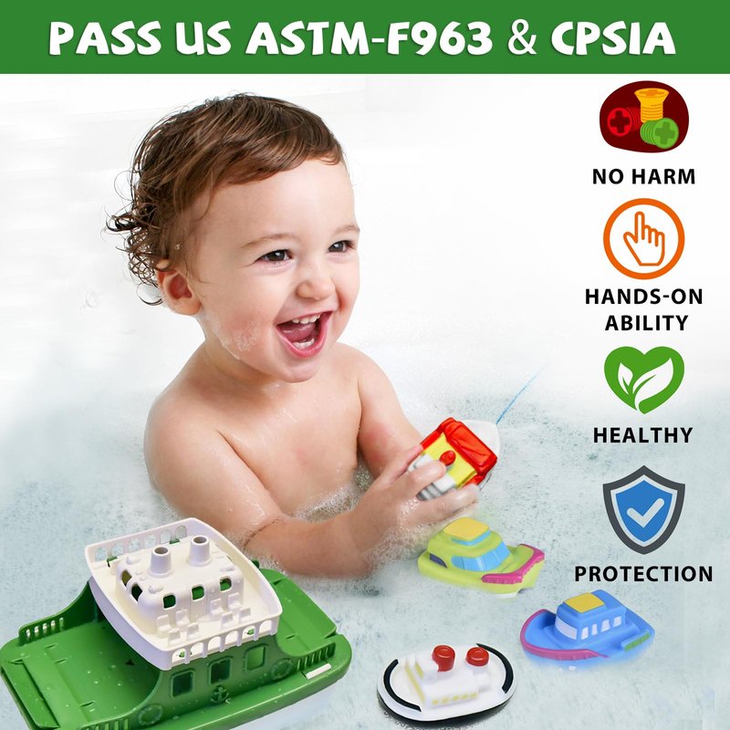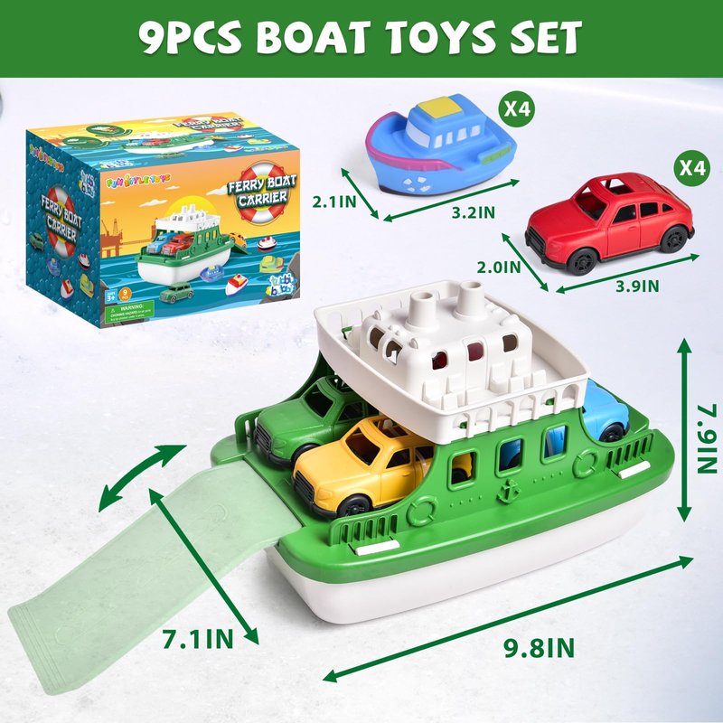 Brrr brrrrrr! Hey! Are you looking for bathtub buddies? Our Toddler Boat Bath Toys are here to embark on an engaging expedition with little captains! Embark on a voyage with our bathtub buddies! Our Toddler Boats Bath Toys includes a happy floating ferry boat that comes with 4 mini cars and 4 rubber squirter boats! Let’s uncover aquatic missions and explore them together! Immerse yourself in this watery journey!