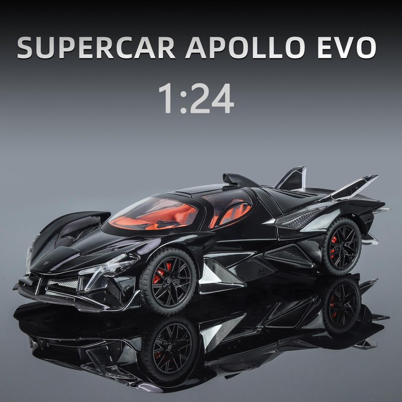 Toy Cars Apo Project EVO Model 1:24 Metal Diecast Car Toys with Light and Sound Pull Back Car for 3 4 5 6 7 Year Old Boys (Black)