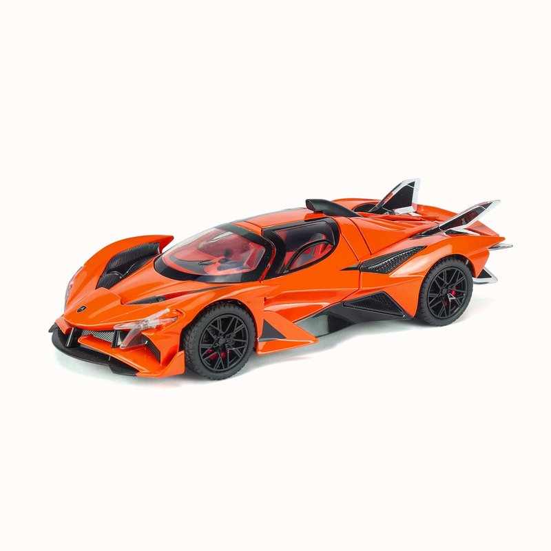 - Dynamic Design and Detail: Equipped with simulated seats, steering wheel, dashboard, and other features, it is like a miniature cockpit. The gull-wing doors swing open, revealing a stylish interior, while the adjustable spoiler adds an aerodynamic touch, giving the toy car a sporty and futuristic appeal.