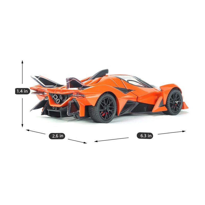 Cool Appearance: The exterior design of our toy car is an absolute showstopper. Its sleek and stylish aesthetic mirrors the latest trends in automotive excellence, ensuring it effortlessly catches the eye. Suitable for car model collectors. Sports Car Size: 6.3 x 2.6 x 1.4 inches.