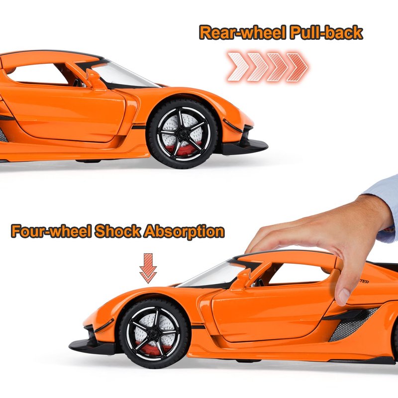 - Multifunction scene: This jesko model car is not just a great toy for kids, not only it offers endless hours of entertainment as, but it can also become a part of your car model collection.The can be used as a decorative item in your home or car. Its elegant and stylish design makes it a perfect addition to any display cabinet or shelf