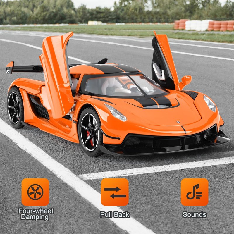 - Jesko Toy Car Material: Alloy die-cast metal and rubber tires manufacturing is more crash resistant. Detailed interior and exterior decoration, ensuring a truly remarkable authenticity