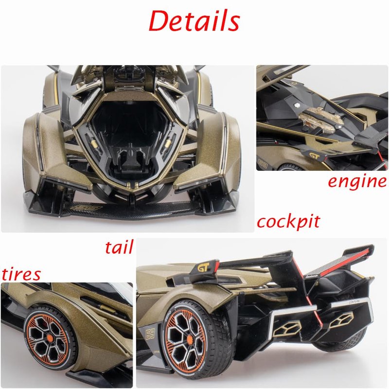Toy Cars Model Lambo V12 Sports Race Car 1/24 Green Alloy Collectible Diecast Vehicles with Sound and Light