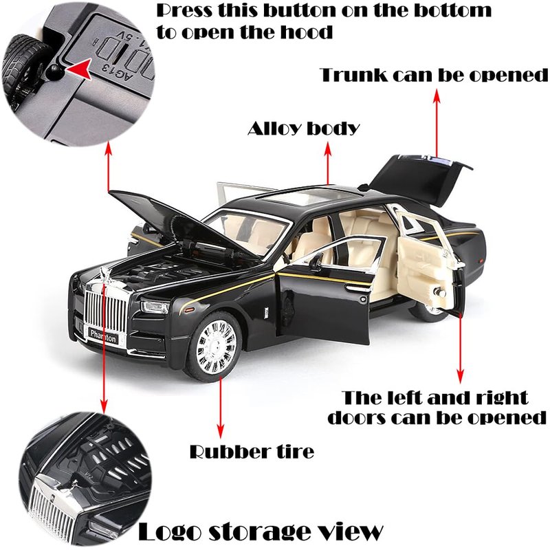 Toy Cars Rolls-Royce Phantom Model Black Alloy Collectibles Diecast Vehicles with Sound and Light
