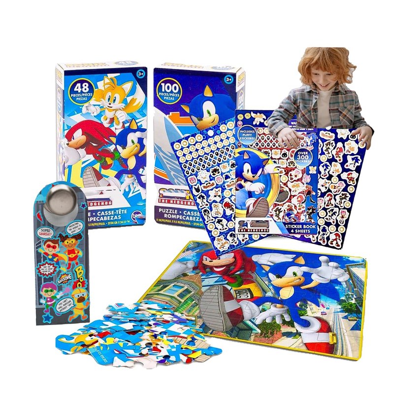 Speedy Adventure with The Hedgehog Kid Bundle is the perfect way to ignite your little one's creativity. With a vibrant and engaging Speedy The Hedgehog theme, our bundle offers a thrilling and enjoyable puzzle-building experience. Our tabletop puzzles are designed specifically for young puzzle enthusiasts, with easy-to-handle pieces that are perfect for small hands. The 100-piece puzzle showcases Speedy The Hedgehog and his friends racing through colorful landscapes, while the 48-piece puzzle features iconic characters from The Hedgehog movie in a fun and challenging format. Once the puzzles are complete, kids can display their finished creations or use the included stickers to customize their Hedgehog-themed creations. Perfect for building fine motor skills, problem-solving abilities, and spatial awareness, our Hedgehog Kid Bundle is a great way to spend quality time with your child while promoting their cognitive development. Whether your little one is a fan of The Hedgehog or simply loves puzzles, our bundle is sure to provide hours of entertainment and educational value. So, gather your family and friends, and get ready for a Hedgehog-fast good time with our Kid Bundle. Get ready to race into a world of adventure with our The Hedgehog Kid Bundle!