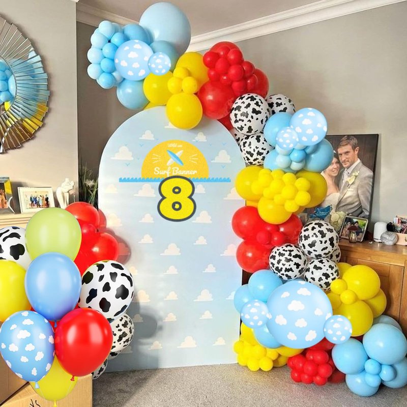 Toy Inspired Story Balloons,12 Inchs Yellow Light Blue Clouds White Cow Print Balloons for Kids Boys Toy Birthday Cartoon Story Farm Theme Baby Shower House Party Decorations