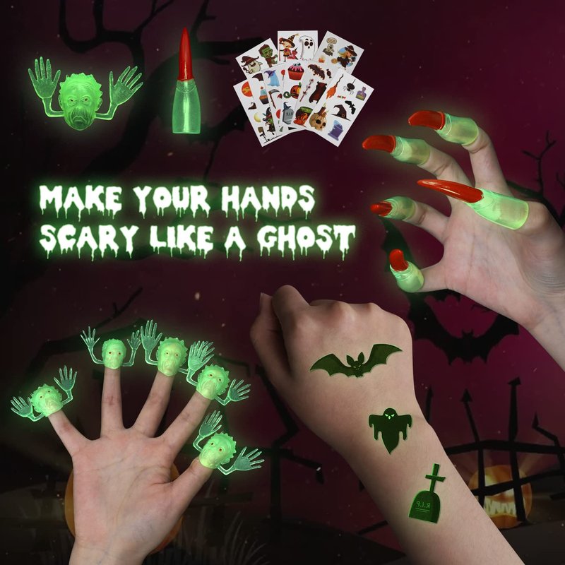 - 🎃 Glow in the Dark Toys : These little bugs glow in the dark Halloween decorations at night! When exposed to light, the creepy critters halloween glow in the dark face paint , adding to the festive gloom. If you wear fluorescent tattoos on your body, it will make Halloween treats non candy fun. Glowing toys, you just expose them to sunlight or artificial light to activate the weirdest and creepiest green light!