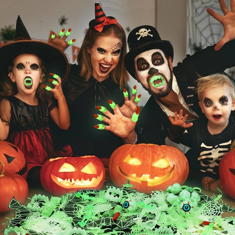 - Glow in the Dark Toys : These little bugs glow in the dark Halloween decorations at night! When exposed to light, the creepy critters halloween glow in the dark face paint , adding to the festive gloom. If you wear fluorescent tattoos on your body, it will make Halloween treats non candy fun. Glowing toys, you just expose them to sunlight or artificial light to activate the weirdest and creepiest green light!
