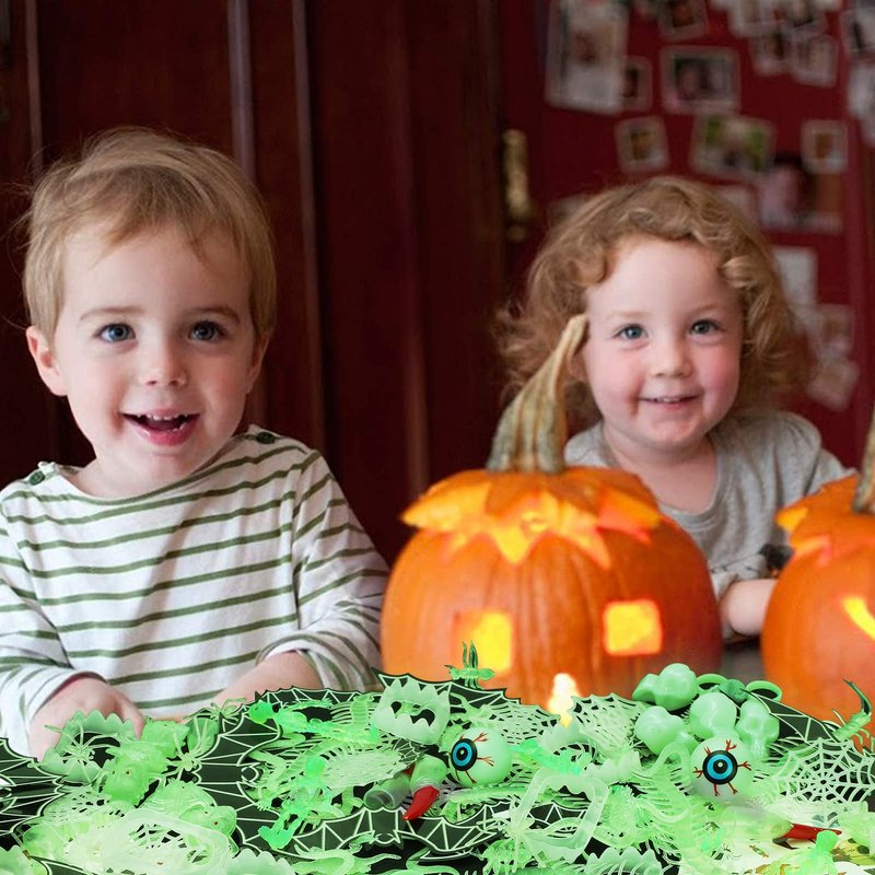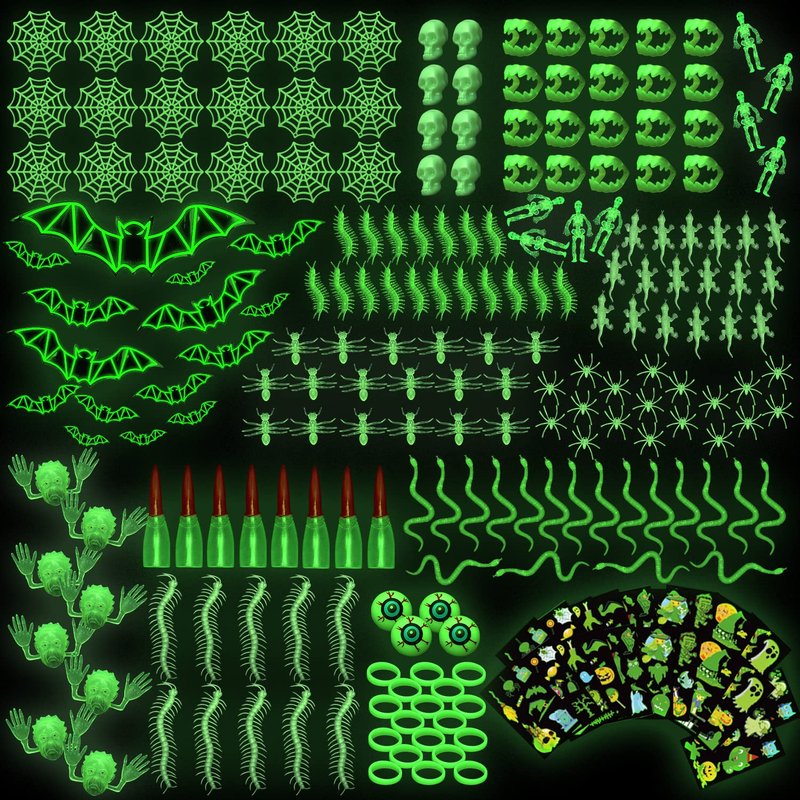 Glowing toys, you just expose them to sunlight or artificial light to activate the weirdest and creepiest green light! Halloween toys bulk : The Gift contains 16 kinds 140pcs great halloween toys. These various fluorescent bugs, insects, and animals come together to become spooky.
