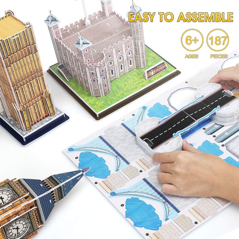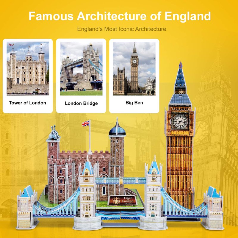 - Collectible, Souvenir, & Perfect Gift - The set of 3D puzzles for adults and kids includes 3 iconic landmarks in the United Kingdom; 3d puzzle of the London Bridge, 3D Puzzle of Big Ben, and a 3D puzzle of the Tower of London. These iconic building kits for adults and kids are great to decorate your home, room, or office.